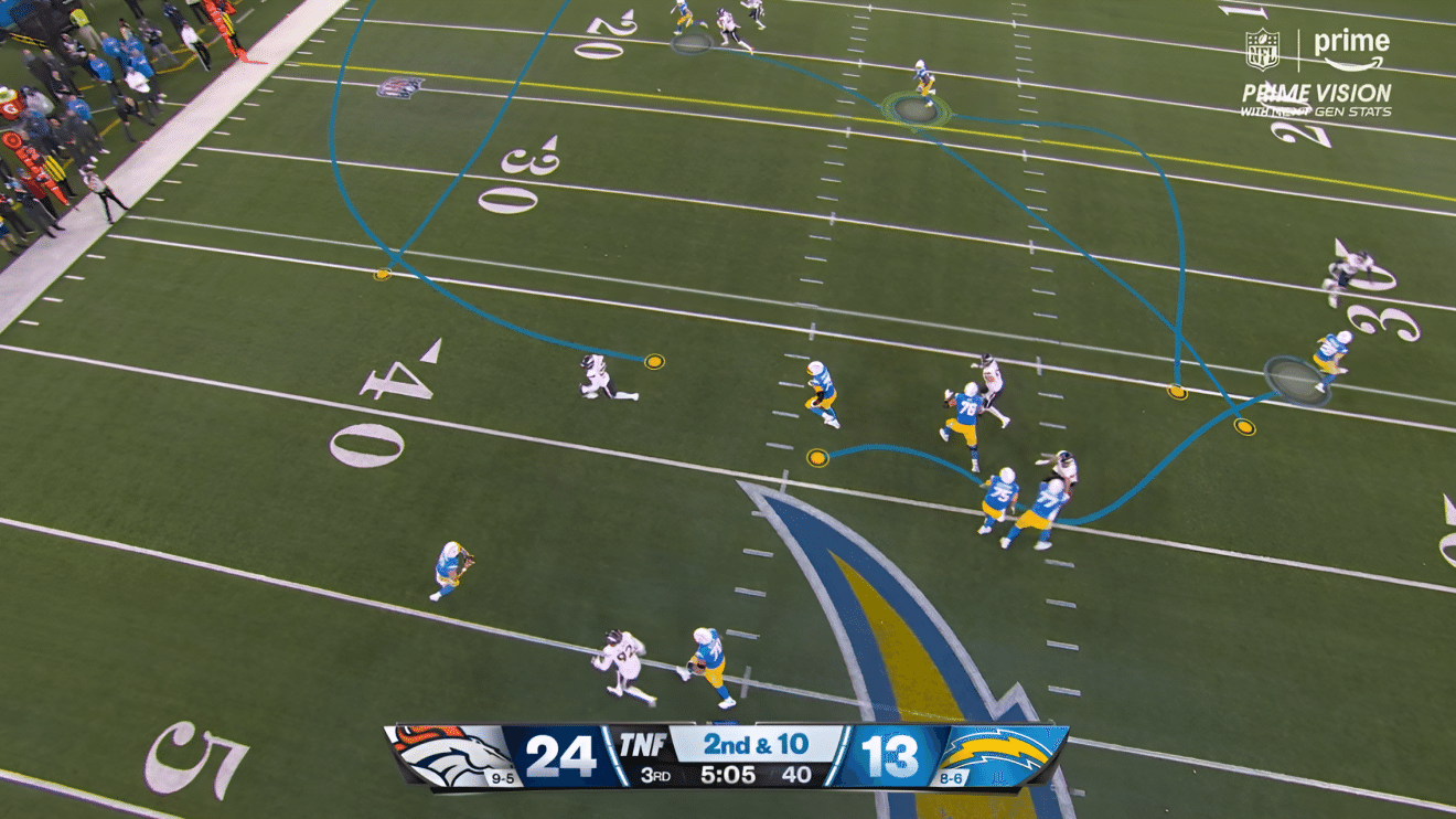 AmazonがTNFの独占配信を始めた頃から、All-22 filmくらいの高さからの映像に、Next Gen Stats由来のルート図やパス成功率などを重ねて表示してくれるモードを通常の放送とは別に作ったものです。