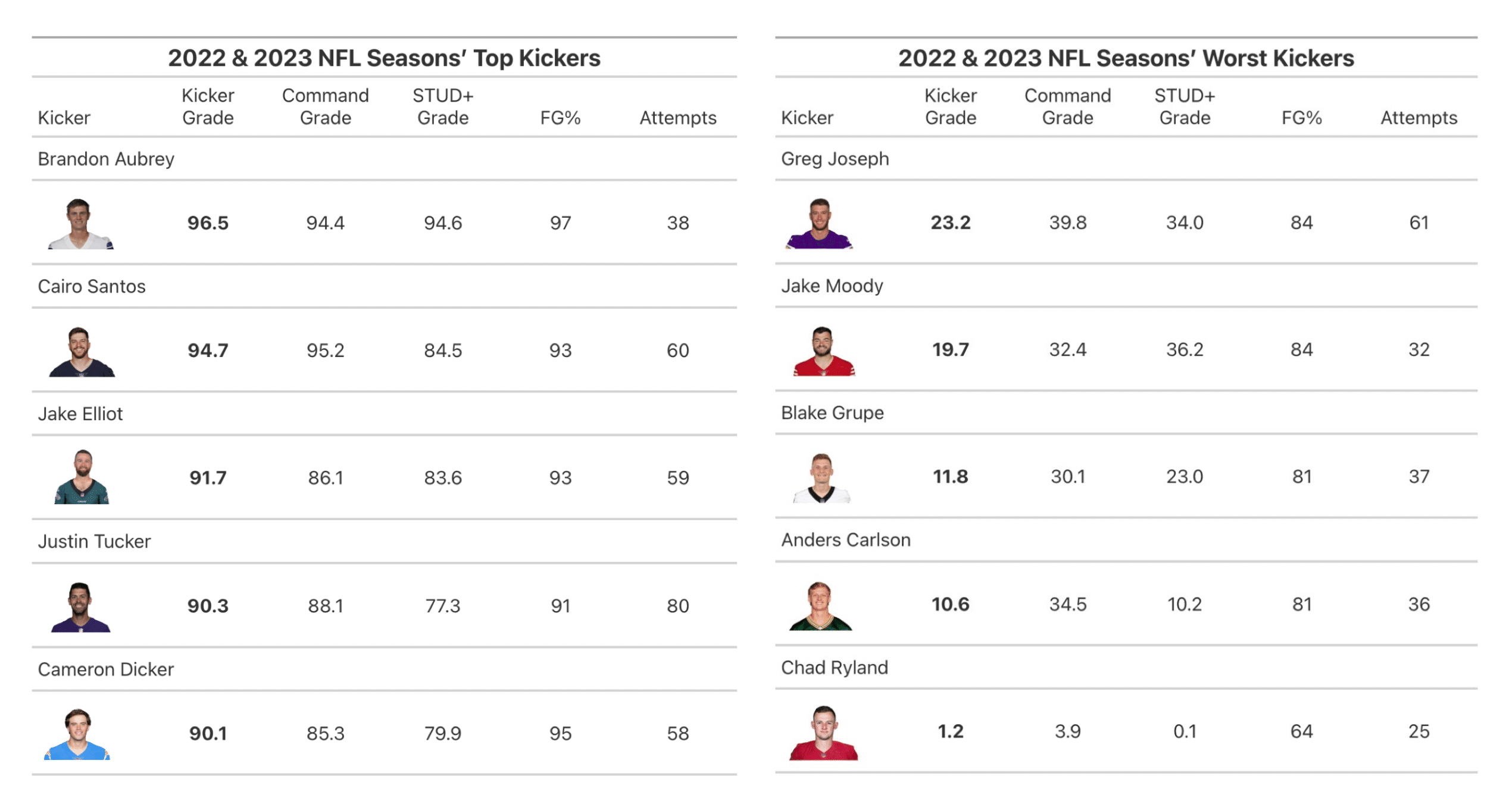 3.4. キッカー総合指標"Kicker Score/Grade": STUD(補正済み成功率)とCommand(正確さ)を両方考慮