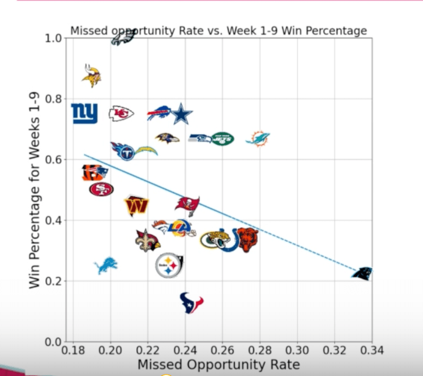 最後に、これは研究内に書いてあったわけではないですが、1つ思ったことを付け加えます。今回一番驚いたのが、先ほどの図のデータで、Frankie Luvu (CARのLB)がミスタックル率で圧倒的に上位にいる点(ミスが4割超え)でした。これ、同地区のNOを応援している自分としては結構意外で、Luvuはいい選手のイメージでした。Off-ball LBなのに毎回凄いスピードでRBやQBに突っ込んできてサックやFFを量産するイメージで天敵。今年3年$36MでWASと契約しましたが、別地区に行って本当に嬉しいくらい、めちゃくちゃ優秀な選手のイメージでした。